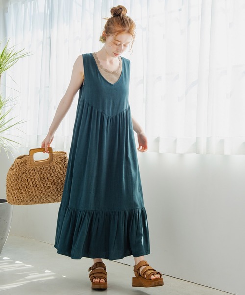 ナチュラルな風合い漂うロングワンピース。動く度にゆらゆらと揺れるシルエットが目を惹きます。ギャザーをたっぷりと施し、リラックス感がある中にも女性らしい雰囲気をプラス。胸下切り替えでスタイルアップ効果があるのも嬉しいポイントです。落ち着きのある上品なグリーンと、スタイリングをぱっと華やかにしてくれるイエローの2カラー展開。合わせるインナー次第で肌見せを調節出来るので、春から秋口までロングシーズンお使いいただけます。※素材ビスコース混なので縮みやすい特性があります。洗濯ネットに入れて手洗いコースで洗うか、手洗い・ドライクリーニングがおすすめです。Vネックデザインで顔周りのすっきり見せも叶います。身体のラインを拾わないゆったりシルエットでリラクシーな着心地に。夏らしく爽やかなリネンビスコース素材。柔らかく肌触りが良いので快適に着ていただけます。- - - - - - - - - - - - - - - - - - - - - - - - - - - - - - - - -透け感:なし裏地:なし伸縮性:なし光沢感:なし- - - - - - - - - - - - - - - - - - - - - - - - - - - - - - - - -※ 撮影時の照明などの環境と、モニターに表示される色味がメーカーにより変わってしまう等の理由により、実際にお届けする商品と、ご覧になられているアイテムの色が若干異なる場合がございます。ご了承下さいませ。