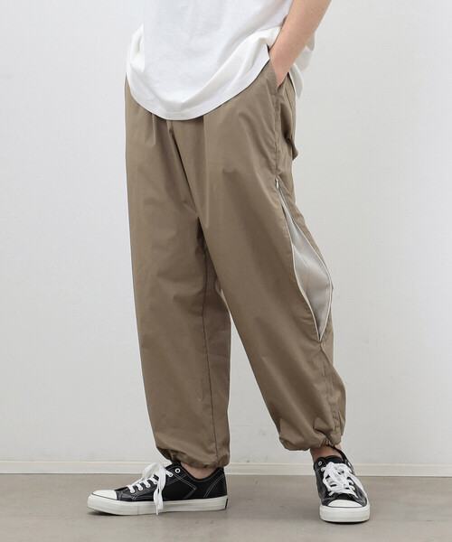 【素材】高密度で織り上げたコットンナイロンストレッチ素材です。薄手ながらもしっかりとした素材で、適度なハリと滑らかでソフトな風合いが魅力です。通気性の高いコットンと軽く耐久性の高いナイロンを組み合わせることでお手入れしやすく夏まで快適に着ていただけます。【デザイン】伸縮性に優れた素材とゆとりのあるシルエットが快適な着心地のストレートパンツです。両サイドのファスナーを開けるとメッシュ生地のマチがついているベンチレーション(換気、風通し)付きのデザインです。両サイドの開く部分には配色のメッシュとファスナーを使用しています。メッシュから風が通るので涼しく、また、ファスナーの開け方と裾のスピンドルでパンツのシルエットを変えることができます。配色がコーディネートのアクセントにもなります。《セットアップ》同素材のシャツ (商品番号:55-06HC34-203)と合わせて、セットアップとしてお召しいただけます。※在庫がない場合もございますので、予めご了承くださいませ。裏地:無し伸縮性:有り光沢感:無し生地の厚み:普通レディースにもおすすめです。レディースモデル(model:H169 B78 W59 H87 着用サイズ:M)#ユニセックス#ジェンダーレス#夏コーデ#パラシュートパンツ#シャカシャカパンツ#セットアップ※画像の商品はサンプルとなりますので実際の商品と仕様、加工、サイズが若干異なる場合がございます。※こちらの商品はFIVE FOXes独自の採寸方法となっています。本サイトのサイズガイドと採寸方法が異なる場合がありますのでご了承ください。
