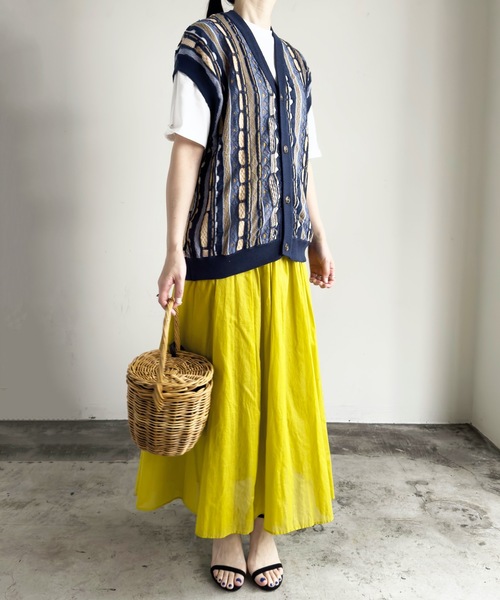 現在の古着トレンドで人気のなる3Dニットをベースに現代風にアップーデートしたニットベストの登場。古着よりもサイズを調整、フロントボタンの開け閉めによってインナーとのレイヤードを楽しめます。奇抜な3Dニットは、複雑な編みから表現される高いデザイン性が特徴的で、立体構造のジャガードは、ニッティングの調整が難しいテクニカルな柄となっています。チノパンやスラックス、デニムパンツなどパンツを選ばず着用できるため、大変重宝するおすすめアイテムです。
