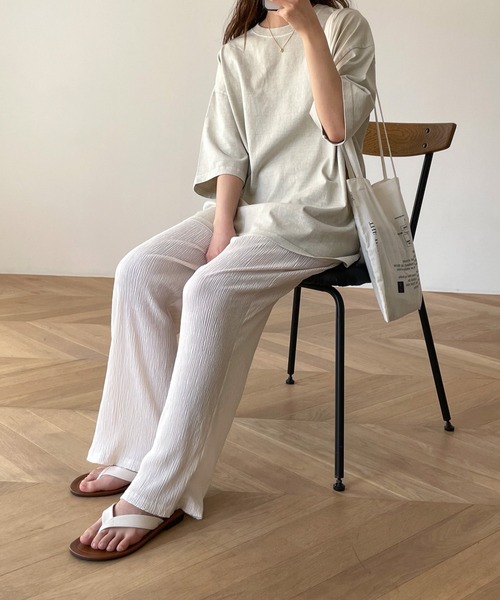デザイン 表面変化のあるシボ感が特徴の楊柳素材を使用したパンツ。 フレアシルエットが脚を長く綺麗に見せてくれるのも嬉しいポイントです。 素材 薄手の生地でドライタッチのため、涼しく快適に着て頂けます。 コーディネート Tシャツやカットソーと合わせたカジュアルスタイルや、ワンピースとレイヤードしたこなれた着こなしにも◎ ウエストはゴム仕様でイージーな穿き心地なのでデイリーに活躍してくれます。 El mar(エルマール) El mar はスペイン語で『海』 海に向かうときはだれでもワクワクする。 洋服を選ぶとき、袖を通すとき、 同じように心が踊るアイテムを提案したい。 そんな『ワクワク』な気持ちを込めて El mar はデビューしました。 ------------------------------------- 生地の厚さ:厚い〇〇〇●〇薄い 伸縮性:あり 透け感:BLKなし/IVOややあり 裏地:なし 光沢:なし 水洗い:可 ・2ポケット ・ウエストゴム仕様 ------------------------------------- 取扱い:洗濯機 濃色は色落ちする可能性がありますので、他の物とのお洗濯はお避けください。 生成り・淡色には蛍光増白剤の入っていない洗剤をご使用ください。 長時間の水への浸漬はお避けください。 洗濯後は速やかに形を整えて陰干しをしてください。 水洗いの後の乾燥機のご使用はお避けください。 この商品は素材の特性上、ピリング(毛玉)の発生しやすい商品です。ご了承ください。 クリーニングネットを使用してください。 アイロン掛けの際は、あて布をご使用ください。 -ATTENTION- ※検品基準が日本とは異なり、海外製品はメーカーの検品基準が甘く、縫製が甘い場合がございますが、全てメーカー基準を満たした商品となっておりますので、予めご了承の上お買い求め下さい。 ※末永く愛用頂く為に、アテンションタグを必ずご確認の上、着用又はお取り扱い下さい。 ※商品の写真はサンプル品を撮影している為、実際の商品とは仕様や加工、加工によるダメージ、サイズ等が若干異なる場合もございます。 ※屋外での撮影画像は、光の当たり具合で色味が異なって見える場合があります。詳細画像をご参照ください。