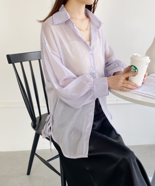 ゆったりとしたドロップショルダーで袖に持たせたボリュームが大人可愛い印象のシースルーシャツ。 サイドの紐がこなれ感を演出してくれるオススメシャツです! どんなコーディネートにも合わせやすいです◎ *撮影環境によりスマートフォン、パソコンなどの画面上と実物では多少色味が異なることがございます。 *商品の特性上、色や形に多少の個体差がございますので予めご了承ください。 ◆ 商品お気に入り登録 ◆ 右のハートをクリックすると、お気に入り登録アイテムの再入荷・在庫ラスト1点等の通知を受け取れます。