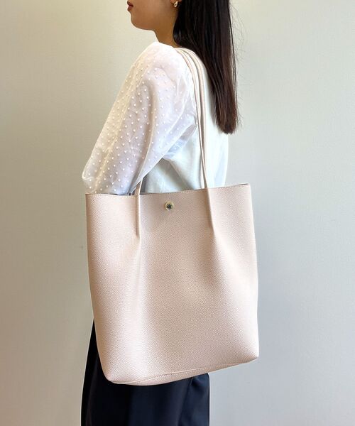 サブバッグとしても活躍するトートバッグ 【デザイン】 表面に凹凸感のある合皮を使用したシンプルなトートバッグです。 たてにA4サイズを収納していただけるサイジングで、 お仕事からデイリーまで幅広いシーンでお使いいただけます。 しっかりとした容量ながら、スリムな見た目のため、サブバッグとしてのご使用にも最適です。 バッグ本体口元はマグネット仕様。 ※ポケット数:内側×1 ※A4サイズ収納可 店舗へのお問い合わせ商品番号:C71-16057 ●製品寸法: 00:高さ32cm 幅(上部)31cm 幅(下部)27cm マチ8.5cm 持ち手上がり29cm 備考:重量:約495g