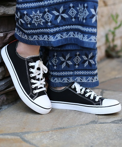 レースアップのスニーカーとして、紐を外せばスリッポンとしても使えるマルチなスニーカーどんなスタイルの足元にも溶け込んでくれる、ベーシックなキャンバススニーカー。かかと部分のカラフルなテープで、チチカカらしさ&着脱しやすさをプラス!ベロにゴムが付いているので、紐を外してもパカパカすることなくフィットしてくれます。紐付きの時は、少し緩めに紐を結んでおけば、紐をほどかずにスルッと履けて楽ちん♪ソールはやや厚みがあり、ほどよいクッション性がGOOD◎定番デザインのスニーカーは、1つは持っておきたいアイテムですね。サイズはレディースMサイズ(23.5cm)、Lサイズ(24.5cm)、カラーはブラック、グリーン、オフホワイトの3色をご用意しました。【TITICACAのお買いものをお楽しみいただくために!】▼商品のお気に入り登録完売カラーの再入荷通知や、ラスト1点の通知、セールの通知も受け取ることができます。▼ブランドのお気に入り登録新商品や再入荷など、いち早くブランドのお得な情報を受けることができます!
