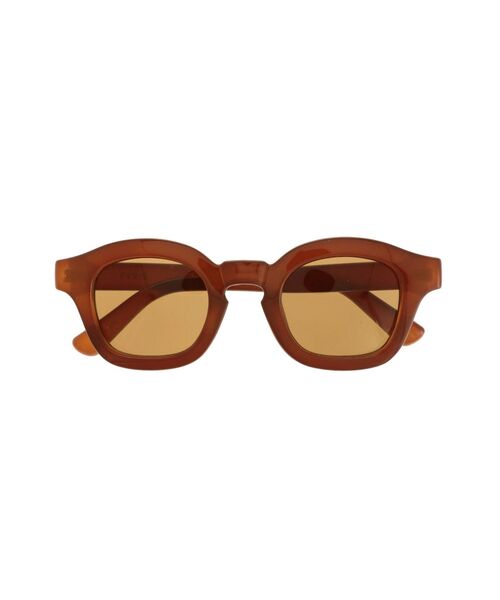 太目のフレームが特徴のシンプルなサングラスです。 レンズに透け感があるので、重たくなりすぎずコーデに合わせやすいサングラスです。