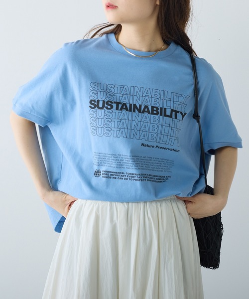 ピュアルセシン 2023 SS collection 【Town to Earth】◇大人カジュアルコーデの必需品!ロゴプリントTシャツ◇ ●商品のお気に入り登録 クーポンやタイムセール、再入荷通知やラスト1点などお得な情報を受け取ることができます。ご登録をお忘れなく◎●デザインフロントのキャッチーなロゴプリントが目を惹くTシャツ。たっぷりとした身幅とドルマンスリーブが、抜け感のある雰囲気を演出します。トレンドライクなショート丈デザインは、様々なボトムスと相性が良く、着回し力抜群◎肌触りが柔らかいオーガニックコットンで仕立てているので着心地も快適です。存在感のあるロゴTは、大人カジュアルなスタイリングに欠かせないアイテム。ワードローブに一枚押さえておくことをオススメします。●カラー展開オフホワイト/ブルー/チャコールグレーの3色展開●素材環境や人々に優しいオーガニックコットンを使用。●スタイリング綺麗めのスラックスやナロースカートを合わせると、ロゴTでも大人っぽく着こなせます。さらに、華奢なアクセサリーやストラップヒールサンダルをプラスすれば、グッと女性らしいスタイルに◎ジャケットのはずしアイテムとしてもオススメの一枚です。===============================透け感:ややあり裏地:なし伸縮性:なし光沢感:なし生地の厚さ:普通【スタッフコメント】年齢:20代後半/身長:158cm/普段着用サイズ:Mサイズサイズ感:身幅・袖幅ともに体が泳ぐくらいの、ゆとりのあるサイズ感でした。素材感:さらっと着れる肌触りの良い生地。===============================※撮影場所やお使いのモニター環境により若干お色味が異なる場合がございます。特にロケの撮影では明るく見える傾向にございます。※予約商品はサンプルで撮影をしております。若干の仕様が変更になる場合がございますので予めご了承の上ご注文くださいますようお願いいたします。