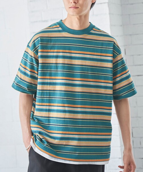 落ち着いた配色のボーダー柄がスタイリングによく馴染む夏TEE。■デザインダークトーンをベースにし、配色カラーがキャッチーなマルチボーダーTシャツ。程よく肩落ちしたトレンド感のあるリラックスシルエットになります。落ち着いた色味ながら存在感のあるデザインなので、インナーとしてはもちろん、夏のTシャツスタイルにも◎■素材しっかりとした厚みの綿100%の天竺素材です。さらっとした肌触りなので夏のTシャツスタイルに活躍します。■スタイリングカーゴパンツに合わせたイマドキなカジュアルスタイルにオススメです。スラックスや極楽パンツ(品番:75406330250)に合わせたキレイめスタイルでも◎夏のショーツスタイルにラフに合わせてもシーズンにマッチした着こなしを楽しめます。透け感:なし生地の厚さ:普通光沢感:なし裏地:なし家庭洗濯:可能(ネット使用)【注意点】※撮影商品はサンプルの為、実際の仕様と異なる場合がございます。※画像の商品は光の照射や角度、お使いのモニター環境により、実物と色味が異なる場合がございます。スタジオ物撮りの画像が実物の色味に一番近くなっております。※予約商品の場合、お届け予定はあくまでも目安となります。生産の都合上、お届け時期が前後したり実店舗入荷時期とずれる場合がございますので、あらかじめご了承ください。品名:マルチカラーボーダーTEE 品番:7525-633-0287