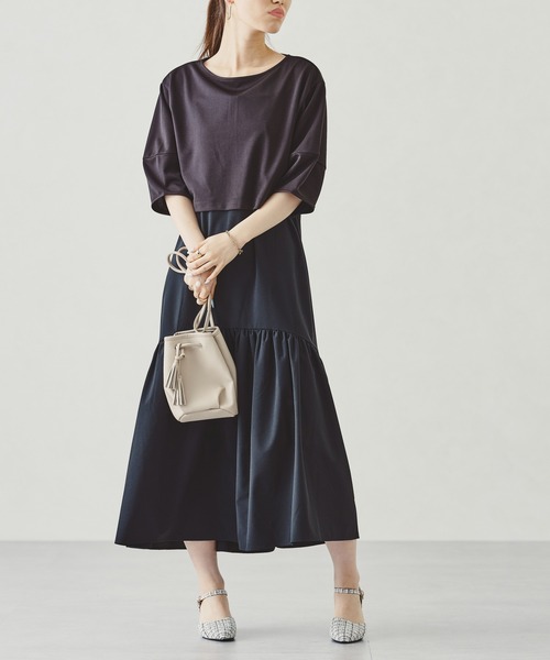 ふんわりとしたボリューム感が可愛いキャミワンピと同色トップスのセットアイテム。シャカシャカとした素材が涼しげなワンピースはストラップで丈の調整が可能。 上品な光沢感のあるトップスは後ろにスリットを入れることでさりげない肌見せが叶う。 どちらも単品使いできるのでコーディネートの幅が広がるアイテム。 ★《お気に入り登録》でお得な情報をGET★ ・「商品のお気に入り登録」で再入荷通知やラスト1の通知、セールやクーポンの通知も受け取ることができます!→ハートマークをクリック ・「ブランドのお気に入り登録」で新商品や再入荷など、お得な情報を受け取ることができます! (カットソーサイズ) 【肩幅】44.0cm【身幅】50.5cm【着丈】40.0cm【袖丈】30.5cm