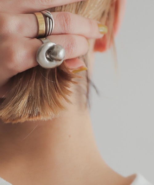 【rapiécage ラピエサージュ】 ■アンティークボタンのようなモチーフの復刻デザイン ■深みのあるマットメッキで、ヴィンテージライクな印象■サイズ調整可能なC型リング <Design> 90年代のアンティークボタンのようなモチーフを復刻した1TOPリング。 深みのあるマットメッキをかけて、カジュアルな着こなしにも重みをプラス。手元のアクセントになります。 立体感のあるフォルムに、真ん中が開いた抜けのある形。 大きさの割に馴染みが良く、ヴィンテージライクな雰囲気もポイント。 C型のリングでサイジングの調整も可能です。 ※商品はrapiécageオリジナルBOXに入れてのお届けになります。