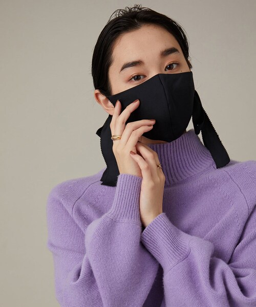 小顔・美鼻効果のあるパターンとサイズ調節が可能なリボン付きのマスク。手洗い可能で、外側にはポリエステル素材を使用しノーアイロンでご使用いただけます。内側には抗菌、防臭、赤ちゃんにも安心品質のノーホルマリンのダブルガーゼを使用しています。リボンを結んでから着用すると、よりスムーズに着用いただけます。甘くなりすぎないよう、リボンは下の方で結ぶのがおすすめです。機能性とファッション性を兼ね備えたマスクです。 ※マスクはウイルス感染を防ぐためのものではありません。 ※あぶらジミや化粧が付いた場合は食器用洗剤で洗ってから衣類用洗剤で洗っていただくと落ちやすいです。 ※お洗濯により多少縮むことがあります。