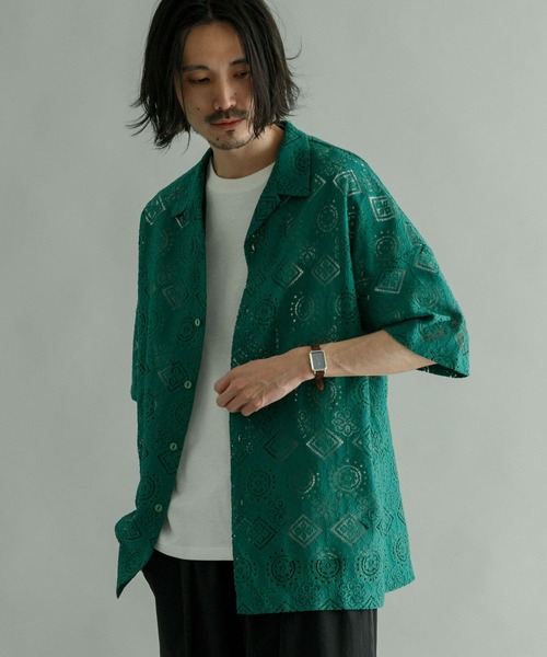 雰囲気たっぷりの最旬シャツで夏を始めてみてはいかがでしょう。 同ブランドらしいレース生地を大胆に使用した夏のスタイリングのアクセントとなるオープンカラーシャツが登場。 カラバリはBLACK・NAVY・GREENを用意してますが、カラーによって柄が異なります。 URBAN RESEARCH iD/アーバンリサーチiD 次世代に向けた、東京ストリートシーンを表現し、国内外の「ブランド」、「人」、「コト」とコラボレーションしたプロダクトや、トレンドとカルチャーを愛するユースに向けた先鋭的なオリジナルアイテムを展開。 【2023 Spring/Summer】 ※この製品はデリケートなレース素材を使用しております。表面に凹凸のある物にこすったり、バッグやベルト、先の鋭い物に引っ掛けますと、ささくれや糸が浮きやすく切れることがあります。お取り扱いや着用はやさしく、充分にご注意ください。 ※ドライクリーニングは短時間の処理で、他のクリーニング物に引っ掛からないよう、ネット使用とご指定ください。 【2023 Spring/Summer】 ※商品画像は、光の当たり具合やパソコンなどの閲覧環境により、実際の色味と異なって見える場合がございます。予めご了承ください。 ※商品の色味の目安は、商品単体の画像をご参照ください。 ▼お気に入り登録のおすすめ▼ お気に入り登録商品は、マイページにて現在の価格情報や在庫状況の確認が可能です。 お買い物リストの管理に是非ご利用下さい。 ----------------------------- 透け感:ややあり 伸縮性:なし 裏地:なし 光沢:なし ポケット:なし -----------------------------