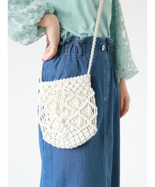 ざっくり感のあるマクラメ編みが魅力的なショルダーバッグ。ちょっとしたお出かけにちょうどよいサイズで、スタイリングのアクセント使いにもぴったり◎>様々なコーディネートに合わせやすく、幅広く活躍してくれるアイテムです。 ※商品画像は、撮影環境やお客様のご利用のPC・スマートフォンのモニター環境などにより実物と色味に差異がある場合がございます。 【その他採寸】 F 全長:[ショルダー]119cm