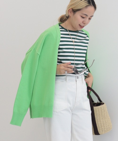 ■デザイン ・ベーシックで使いやすいボーダートップス。 ・ぴったり過ぎず、程よくゆとりがあります。もたつかず、シャツやカーディガンのインナーとしても活躍できるサイズ感です。 ・首元に太めのパイピングを施しアクセントに。 ・ステッチ(袖への切り替え部分)を表に施しているのもポイント。 ■カラー ・夏らしいパキッとしたカラー×ホワイトのボーダーです。 別品番で色違い【杢ライトグレー】もご用意しております。 ※一部素材が異なります。 HC36L1C04F0 5分袖ボーダーカットプルオーバー2 Sustainable Item 環境に配慮した染色技法で生産したアイテムです。 ・水、ガス、電気の消費量を削減。 ・塩素を使用せず、不純物の排出を削減。 ・シワ跡の少ない仕上がりのため、生地の廃棄量が減少。 【洗濯表示】 40℃以下の弱い洗濯機洗い可/酵素系漂白剤可/タンブル乾燥禁止/日陰つり干し/150℃以下のアイロン仕上げ可/石油系ドライクリーニング可 透け感[無し] 裏地[無し] 伸縮性[有り] 光沢感[無し] 生地の厚さ[普通] 付属品[無し] ポケット[無し] ●製品寸法: M:バスト46 着丈60.5 裾幅48 L:バスト49 着丈62.5 裾幅51 備考: