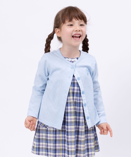 ダイヤ柄のジャガード天竺素材のカーディガン。お花のボタンを外すと、下前立てにはお花柄がちらり♪夏の紫外線や冷房対策にも重宝するアイテムです。抗菌・抗ウイルス・消臭効果・防汚・花粉対策の効果がある【TioTio加工】が施されています。●生地の厚さ:普通●裏地:なし●ポケット:なし●伸縮性:あり●透け感:ややあり サイズ展開:80cm~160cm ※こちらのページは100cm~130cmの取扱いです。 80cm~90cmは商品コード:71070924 140cm~160cmは商品コード:71071060です。 【KP/ケーピー】 ヨーロピアンカジュアルをベースに、流行のエッセンスを採り入れながら品があり、それでいて元気な女の子の可愛らしさを表現。服だけでなく帽子や靴、バッグ . . . . .といった小物まで女の子のさまざまなシーンに対応できるアイテムを提案していきます
