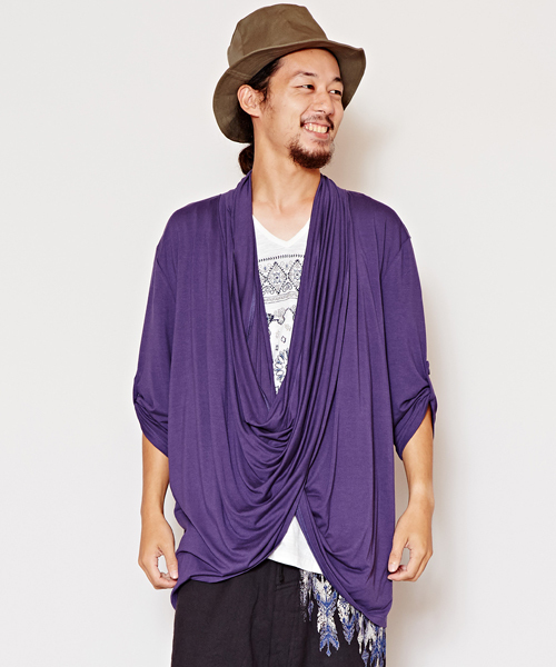 ボリュームたっぷりのドレープで個性的なカーディガン。ドレープ布の掛け方を変えて、フロントをクロスさせたトップスにも◎柔らかくなめらかなカットソー素材で着心地も良く、コーディネートをお洒落に演出してくれます。※こちらの商品は1点1点職人による手作りとなります。その為、形や色合いなど若干異なる場合がございます。あらかじめご了承ください。Amina Collection Co.,LTD.