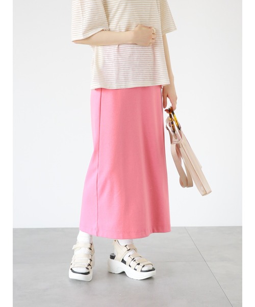 ストンと落ち感のあるストレートシルエットが縦のラインを美しく魅せてくれるスカート。バックにはスリットを施し、さりげない抜け感を演出します。様々なスタイリングで活躍してくれる、着回し力の高いアイテムです。 ※商品画像は、撮影環境やお客様のご利用のPC・スマートフォンのモニター環境などにより実物と色味に差異がある場合がございます。 【その他採寸】 F ウエスト:[後ゴム仕様]64cm