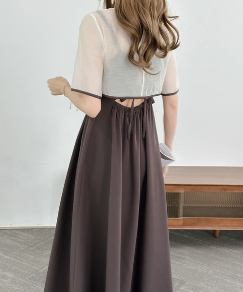 一枚でモードな雰囲気に仕上げてくれるシアーショットブラウスコンビキャミワンピースが登場!裾にかけてほんのり広がるフレアシルエットがどこから見ても美しいワンピース。ボレロのシアー感が顔周りを華やかな印象にしてくれます。程よい透け感で気になる二の腕を綺麗にカバーしてくれるのも嬉しいポイント◎。キャミワンピースのバックリボンデザインがバックスタイルまで上品に。周りと差がつくデザインで、プライベートからオケージョンまで幅広いシーンに活躍します。▼お気に入り登録のおすすめ【気になるアイテムを登録】ハートをクリックしてお気に入りに登録すると完売カラーの再入荷やラスト1点の通知、セールの通知を受けとることができます。【ブランドを登録】新商品や再入荷、セール通知など、いち早くブランドの情報を受けとることができます。是非ご利用頂き、お買い物をお楽しみ下さい。▼商品について・サイト上のカラー名と、お届け商品に記載されているカラー名が異なる場合がございます。・商品の色味は、撮影場所や光のあたり具合などにより色味が違って見える場合がございます 。また、お客様のお使いのPCのモニター環境などにより色味が違って見える場合がございます。予めご了承の上ご注文下さい。★詳細ディテールは、下記のライブ配信でリクエスト頂くことで御確認できます。tiktokアカウント①「abiを作った悪魔」最新情報をチェック!②「ENチャンネル」平日毎朝7時~9時LIVE配信でお得な情報をGET!