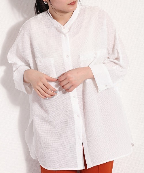 涼しいサッカー素材のドルマンシャツ◇Point◇ドルマン型でゆったりシルエット丈は後ろの方が長いです。袖は7分丈で、春から夏にかけてお使いいただけます。◇Material◇地球に優しいリサイクル繊維サッカー素材で通気性が良く、涼しくお使いいただけます。汗などの水分が乾きやすい為、暑い日も快適にご着用いただけます。洗濯機でのお手入れが可能です。◇Coordinate◇リサイクルポリサッカーストレート(CT3-1109)とセットアップでお使いいただけます。インナーは、キャミソールやタンクトップをお使いいただくと、抜け感が出ます。シルエットがゆったりしている為、タイトスカートや細身なパンツと合わせても◎1枚あれば夏も快適にお過ごしいただけます。ぜひ、体感してみてください。※照明や天候により実際の色味と異なって見える場合がございます。ご了承くださいませ。