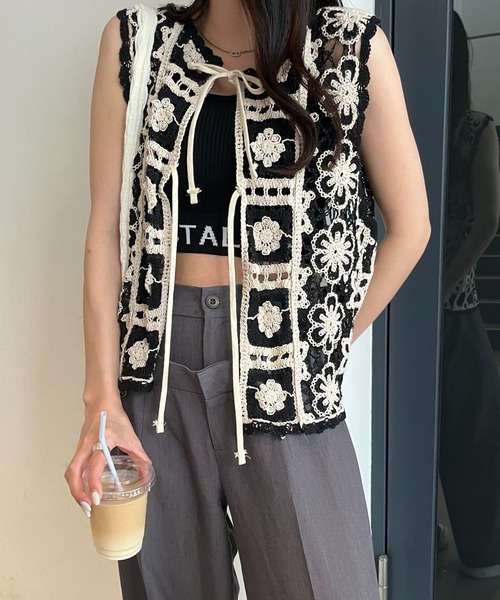 【Delfy 2023 SS】かぎ針編みリボンベストブランド品番:NM1732nemneから新line、Delfy(デルフィー)が登場!韓国風のカジュアルやガーリーなアイテムを展開していきます。▼pointトレンドのかぎ針編みアイテムは、コーデの主役になります。紐を結び、前を留めれば愛らしい印象に。ワンピースやシャツ、Tシャツにレイヤードするだけでお手持ちのアイテムをアップデート。今年らしいスタイリングがお楽しみ頂けます。▼coordinate “ 指空きアソートリブロンT (NM1668) “と相性抜群!▼fabric-------------------------------透け感:あり裏地:なし生地の厚さ:普通伸縮性:ややあり光沢感:なし-------------------------------▼スタッフが着用してみました!身長:157cm 普段着用サイズ:M 今回着用サイズ:F【着用感】程よい身幅でストレスフリー。--------------------------------nemneブランドコンセプト-古着女子プロデュースブランド【nemne】“背伸びはしない ありのままでのびのびときょうのわたしが きのうのわたしのおきにいりになるようにとっておきのねんね”※サイト上のカラー名と、お届け商品に記載されているカラー名が異なる場合がございます。※ご覧のモニター環境により、画像の色味と多少異なる場合がございます。※ご注文いただいた予約商品のお届け時期の確認は、注文履歴ページより行えます。★《お気に入り登録》でお得な情報がいっぱい★・「商品のお気に入り登録」で再入荷通知や、ラストの通知、セール通知も受け取ることができます。・「ブランドのお気に入り登録」で新商品や再入荷など、お得な情報を受け取ることができます!