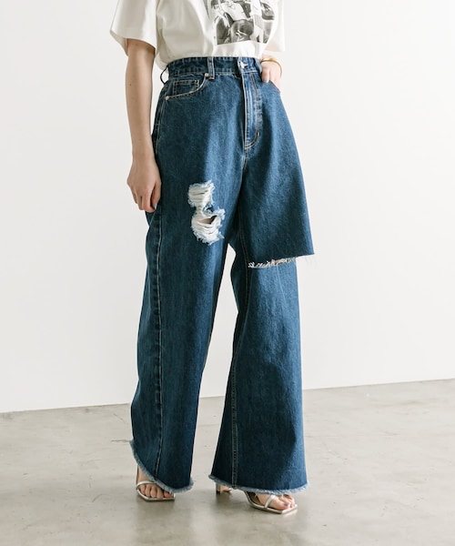 美脚見え効果抜群!トレンドのダメージ加工が目を惹くデニムが登場!商品ポイント・美脚見え間違いなしのダメージの効いた美脚見えデニムが登場!・ストレートだけど少しワイドに広がるシルエットが今季らしいデザイン。・左右で異なるクラッシュ加工がスタイリングに取り入れるだけでポイントに◎・3サイズ展開なので幅広い身長の方に着用して頂けます!スタイリングコメント・ハイウエストなのでクロップドトップスやショート丈カーディガンと相性抜群!・オールシーズン使いやすい素材感。※洗濯、取り扱い洗濯:40度限度手洗い可アイロン:低温110℃まで可 スチームなし(あて布使用)タンブル乾燥:不可------------------------------------------------------裏地:なし伸縮性:なし光沢感:なし生地の厚さ:普通------------------------------------------------------------------------------------------------------------商品のお気に入り登録➡ お気に入りアイテムの値下げ・再入荷・在庫1点などの通知を受け取ることができます。ブランドのお気に入り登録➡ 新商品や再入荷、セール、クーポン配布などお得な情報を受け取ることができます。※サイト上のカラー名と、お届け商品に記載されているカラー名が異なる場合がございます。※商品の色味は、撮影場所や光のあたり具合などにより色味が違って見える場合が御座います 。また、お客様のお使いのPCのモニター環境などにより色味が違って見える場合が御座います。予めご了承の上ご注文下さい。※ご注文いただいた予約商品のお届け時期の確認は、注文履歴ページより行えます。------------------------------------------------------