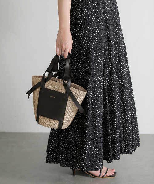 【2023SS】LaTotaliteアバカとレザーのコンビネーションが大人コーデにマッチ。マチがあるため財布やポーチ等、お出かけの必需品をしっかりと収納していただけます。ニュアンスのあるハンドルデザインがコーデのポイントに。【VIOLAd’ORO/ヴィオラドーロ】イタリア語でVIOLAは紫、OROは金。VIOLAd’OROには、持つごとに愛着が湧き大切に扱われる、そして自分のスタイルを完成させるのに欠かす事ができない、そんな存在であって欲しいという願いが込められています。可愛らしさを残しつつも、凛とした強さ、自分のスタイルを持っている女性を想い描きながら VIOLAd’ORO らしさを日々追求しています。先方品番:V-8593弊社カラー:先方カラーブラック:NATURAL*BLACKキャメル:NATURAL*CAMEL※取り扱いについては、商品についている品質表示でご確認ください。※照明の関係により、実際よりも色味が違って見える場合があります。またパソコン・スマートフォンなどの環境により、若干製品と画像のカラーが異なる場合もございます。※商品の色味は、商品アップ画像をご参照ください。