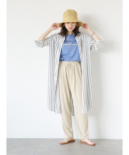 ゆるっと着られるマルチスタイルシャツワンピース。 すとんとしたシルエットで気になるボディラインもカバー。リラックスして着用することができます。接触冷感素材を使用した軽やかな着心地も魅力ポイント◎ ワンピースとしてはもちろん、ガウンのように羽織ったりと、様々なスタイリングのアレンジも楽しめます。 ※商品画像は、撮影環境やお客様のご利用のPC・スマートフォンのモニター環境などにより実物と色味に差異がある場合がございます。 【その他採寸】 M 着丈:[前]106cm[後]110cm L 着丈:[前]108cm[後]112cm