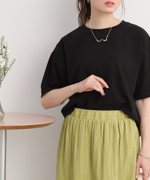 大活躍間違いなしのゆるTシャツ!嬉しいたくさんの機能付き!! 【ポイント】 ・大人カジュアルの必須アイテム! ・ニュアンスのある、こなれTシャツ ・触れた瞬間ひんやりする接触冷感機能付き 【デザイン】 こなれ感をニュアンスにしたクルーネックのオーバーサイズTシャツ。 こだわりの程よい開きが絶妙なラウンドネック。 お袖はドロップショルダーでゆったりと着ていただけます。 裾は前後差のあるラウンドヘム、ヒップを隠してくれる「後ろロング丈」がポイントです。 【スタイリング】 さらりとアウトスタイルで着ていただくときには、細身のパンツやナロースカートを合わせて、 ゆるっとカジュアルな着こなしがおすすめ。 すっきりしたインスタイルにはワイドパンツやふんわりスカートを合わせ、 大人カジュアルに着て頂くのがおすすめです。 袖口を少し折り返して着るのもこなれ感が出せて◎ 幅広いスタイリングを楽しんで♪ 涼し気に見せてくれるボーダー(303カラー)、オフホワイト(003カラー)が特に人気です。 【生地、素材感】 生地感:AIR SHIELDというTシャツ素材。肌触りの良いコットンを使用 伸縮性:あり その他:接触冷感機能付き ※オフホワイト(003)、オフホワイト(303)はやや透け感があるため、インナーの着用をおすすめします。 ※この製品は、太陽光線中の紫外線(UV)を通しにくくします。この効果は永久的ではありません。 ※AIR SHIELD(エアシールド)...「空気をまとう」のコンセプトのもと誕生した、セラミックスと翡翠の粒子を練り込んだ異形断面糸を複数束ねた素材。 接触冷感機能を兼ね備えた素材です。 モデル情報:身長163cm B81 W56 H82 着用サイズ:02(M) 店舗へのお問い合わせ商品番号:741-16401 ●製品寸法: 02(M):着丈68cm B118cm 袖丈18cm 肩幅55cm 03(L):着丈70cm B121cm 袖丈18cm 肩幅56cm 04(LL):着丈72cm B124cm 袖丈19cm 肩幅57cm 備考: