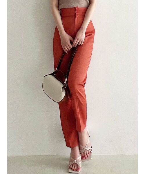 シルエットにこだわったテーパードパンツ▽デザイン▽表面感のあるクレープ生地を使用したテーパードパンツ。触り心地もとても良く高級感ある生地を選んだのがポイントです♪センタープレスを入れたことで美脚効果抜群◎ウエストはしっかり引き締めながらもヒップラインはカバーしてくれるアイテム。シンプルなデザインなので春~秋にかけて重宝します◎▽カラー▽白・黒・オレンジの3色展開。▽スタイリング▽ペプラムキャミチュニックを合わせればセットアップとしても着用可能。シンプルなパンツなので様々なトップスと好相性◎テーパードパンツはサンダルやパンプスと合わせるとキレイ目スタイリングが完成します♪【セットアップアイテムはコチラ】152340473601:ペプラムキャミチュニック