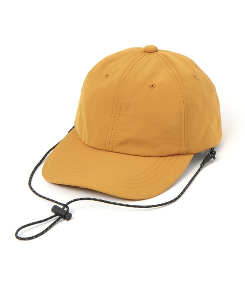 撥水生地を使用したコード付きキャップ。 アウトドアシーンにも便利なコードのあご紐は、取り外し可能なので、シーンに合わせて着脱していただけます。 ベーシックなカラーに加え、カジュアル感をアップさせたポイントカラーもご用意。 ツイルとは異なる風合いをお楽しみください。