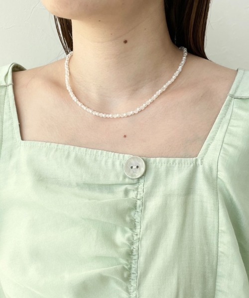 ーーー【デザイン】華奢なパールでデイリー使いが叶うネックレス。程よいサイズ感で、首まわりのアクセントにぴったりのアイテムです。どんなスタイルにも合わせやすいデザインです。ーーー※屋外の光や照明の当たり具合で、実際の商品と画像の色味に違いが発生する場合がございます。※パールはイミテーションパールを使用しています。