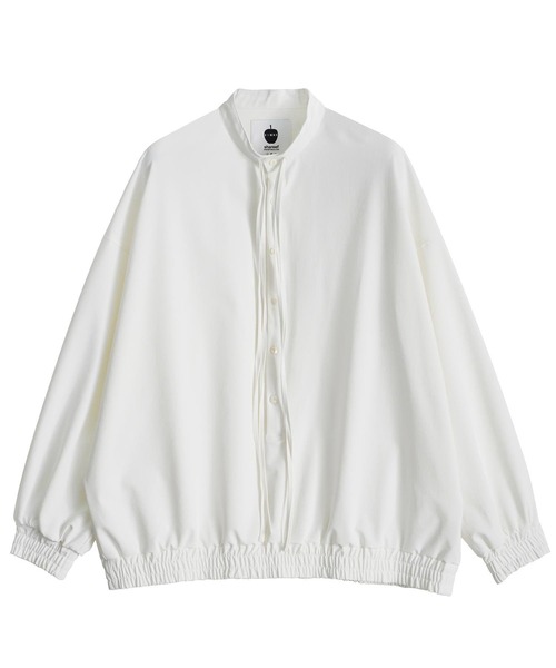 張り感のあるドライタッチな肌触りでシワになりにくいプルオーバーシャツ。すっきりとしたスタンドカラーとスピンドルデザインが印象的。 model:H186 B82 W68 着用サイズ:2