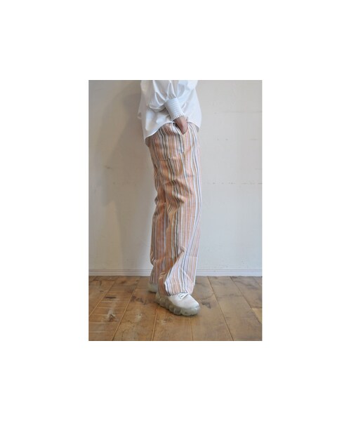 マルチストライプのイージーパンツ。 ストレッチのライナー付きです。 ヒップ周りもゆったりめのサイズなので穿き心地のいいパンツです。 裾は折り返しても穿けるような仕様にし、折り返すと別のストライプが見えるようになっています。 色違いにモカあり。 ●商品一覧トップページはこちら↓ http://urx3.nu/LHHy
