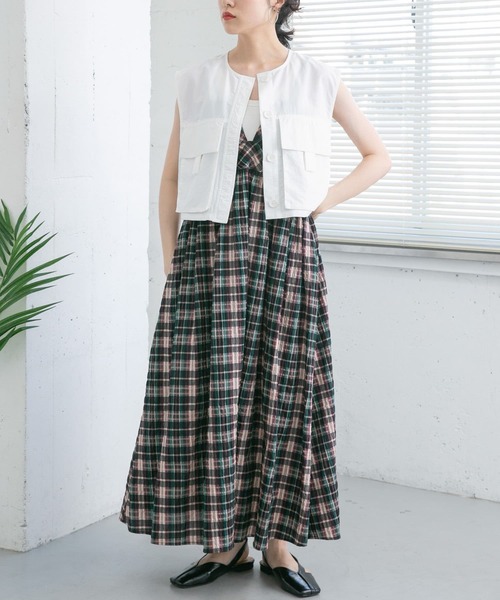 【絶妙なバランスが魅力のミリタリーベスト】コンパクトなフォルムと大きめのポケットが絶妙なバランスに仕上げてくれるミリタリーベスト。軽い着心地やご自宅で手洗い可能な点もポイント。いつものコーディネートに新鮮さを与えてくれるプラスワンアイテムです。POINT・バランス良く仕上がるコンパクトなフォルム・軽い着心地&自宅で手洗い可能・スタイリングに新鮮さを与えるプラスワンアイテムCOORDINATE柄シャツやシンプルなTシャツにさらっと羽織るだけで新鮮な着こなしに仕上がります。キャミワンピやフェミニンなブラウス合わせは大人カジュアル且つ女性らしさも演出します。【2023 Spring/Summer】※この商品は、水洗い可能となっておりますが、水洗いすることにより若干縮むことがありますのでご了承ください。※商品画像は、光の当たり具合やパソコンなどの閲覧環境により、実際の色味と異なって見える場合がございます。予めご了承ください。※商品の色味の目安は、商品単体の画像をご参照ください。▼お気に入り登録のおすすめ▼お気に入り登録商品は、マイページにて現在の価格情報や在庫状況の確認が可能です。お買い物リストの管理に是非ご利用下さい。素材感透け感 : ややあり(OFFのみ)伸縮性 : なし裏地 : なし光沢 : なしポケット : あり