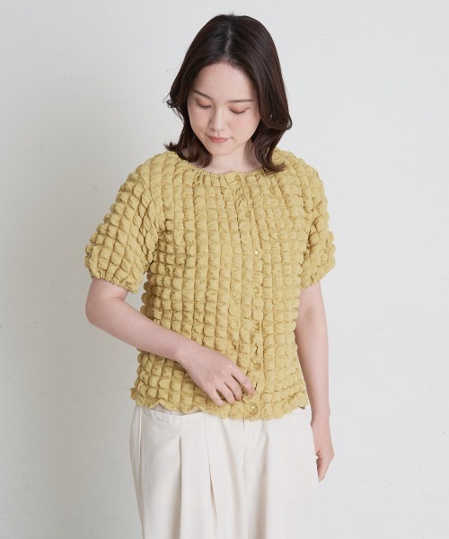 ◆ポコポコ素材が可愛いカーディガン◆ ≪ディレクターセレクトアイテム≫ カーディガンとしても、プルオーバーとしても着られる万能アイテムです! お色味は、使いやすいアイボリーとブラック、 アクセントになるイエローの3色展開です。 スカートにもパンツにも合わせやすい丈感で、 トレンドの素材感なので、いつものコーデに取り入れるだけで 一気に旬度アップするアイテムです! …………………… 透け感:なし 厚さ:普通 伸縮性:あり …………………… ≪お気に入り登録機能の使い方≫ ■商品のお気に入り登録(ハートマークをクリック) 再入荷通知や値下げ等、お得なご案内を受けることができます。