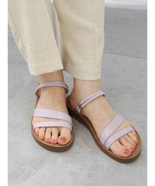 アッパー部分のデザインがお洒落な風合いを演出するサンダル。ストラップの位置を変えることで、2通りの履き方を楽しめます。歩きやすさを実現するフラットな形状もポイント◎暖かい季節のお出かけシーンに重宝したいアイテムです。※商品画像は、撮影環境やお客様のご利用のPC・スマートフォンのモニター環境などにより実物と色味に差異がある場合がございます。