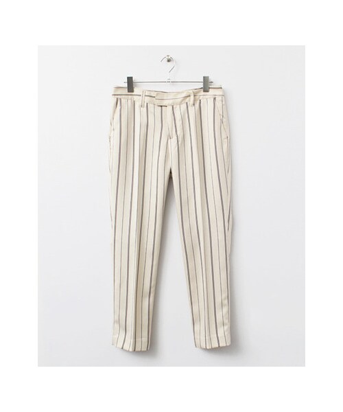 ***mio's recommend***やや起毛感のある柔らかな素材で仕上げたパンツ。穿いた時に綺麗に見えるよう、テーパードラインに仕上げました。ポイントはシルエットの綺麗さと絶妙な相性に仕上がったリラックス感のある素材。パジャマっぽい何とも言えないヌケ感にこだわりました。ルーズだけれど、スマートに穿いて頂ける一本。シルエットは緩すぎないので、合わせ方でON・OFF問わずに活躍できるはず。スニーカーやフラットシューズでもスッキリみえるテーパードの仕上がりですので、デイリーユースに最適な一本です。※ 詳しい洗濯方法については、商品の品質表示タグをご覧ください
