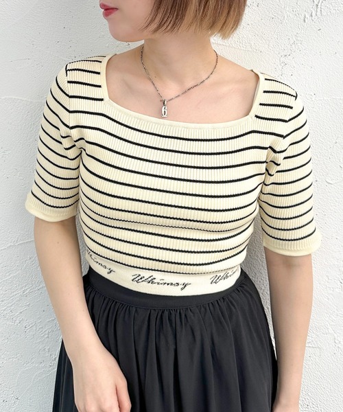 【今年のトレンドアイテムならこれ‼】 トレンド感のあるショート丈とコンパクトなサイズ感ですっきり着れるリブニット。 裾のロゴ入りのゴムがコーデのポイントに。 スクエアネックなので首元をすっきりと見せてくれてくれます。 伸縮性のあるリブ素材で丈感の微調整もしやすくヘルシーな肌見せスタイルが叶う1枚です。 1枚で着ても決まり、上からシャツやブラウスを重ねてもこなれ感のあるトレンドコーデに仕上がります。 --------------------------------------- 生地の厚さ:普通 透け感:なし 伸縮性:あり --------------------------------------- ※サイトに表示されておりますカラー表記とお届け商品についておりますタグのカラー名が異なる場合がございますが、 実際の商品のカラーは画像と相違ございません。 ※ご覧のモニター環境や撮影環境により実際の商品と多少色味が異なって見える場合がございます。 ご理解の程よろしくお願いいたします。 【お買い物をよりお楽しみいただく為に♪】 ▼商品のお気に入り登録をおすすめします ♡をクリック! 完売カラーの再入荷や、ラスト1点の通知、 セールの際の通知を受ける事ができます。 ブランドのお気に入り登録も ご一緒にお願い致します。