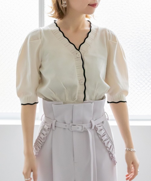 ◆2023SS新商品◆ 配色ラインが効いたスカラップデザインをあしらったカーディガン POINT ・ハイゲージの糸でさらっとした着心地 ・目を惹く上品なスカラップデザイン ・バランスがとりやすいショート丈 ・タック入りの袖がふんわりとしたフェミニン感のあるシルエットを演出 COORDINATE ・ボタンを閉めてトップス風にも、ルーズに着崩してカジュアルにも決まるデザイン。 その日の気分で様々な着こなしが楽しめます。 - - - - - - - - - - - - - - - 洗濯方法:手洗い可 透け感:なし 裏地:なし 伸縮性:あり 生地の厚さ:普通 - - - - - - - - - - - - - - -