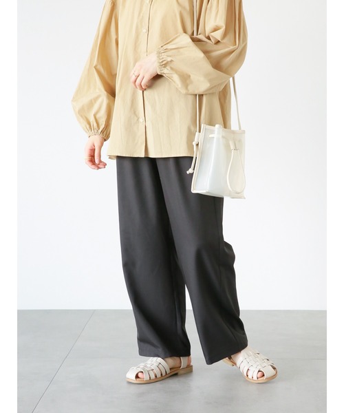 すとんとしたワイドシルエットが美しい脚のラインを演出するパンツ。ウエストからタックを施し、上品な印象を与えます。バックはゴム仕様なので、お腹を締め付けない穿き心地がポイント◎普段のカジュアルなコーデはもちろん、きれいめコーデにもお使いいただけるアイテムです。 ※商品画像は、撮影環境やお客様のご利用のPC・スマートフォンのモニター環境などにより実物と色味に差異がある場合がございます。 【その他採寸】 F ウエスト:[後ゴム仕様]64cm