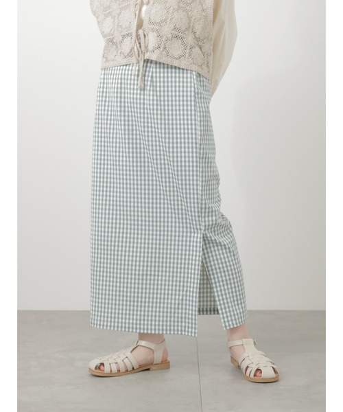 ギンガムチェックで仕立てられたデザインが可愛らしさを演出するスカート。すとんとしたナローシルエットと、足さばきのよいスリット入りで着やすさも◎ ガーリーっぽくも、大人っぽくも着られるので、コーデの幅が広がるアイテムです。 ※商品画像は、撮影環境やお客様のご利用のPC・スマートフォンのモニター環境などにより実物と色味に差異がある場合がございます。 【その他採寸】 F ウエスト:[後ゴム仕様]64cm