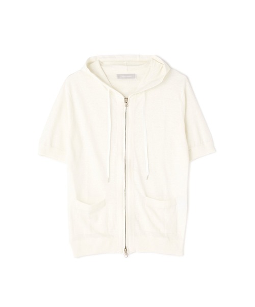 【DESIGN】 テンセル混のリネン糸を使用したハイゲージの半袖パーカーです。 きれい目なカジュアル感のある羽織アイテムとして夏場に重宝するアイテムです。 【TEXTILE】 清涼感のあるリネンにソフトな風合いで、微光沢感のあるテンセルをMIXした糸を使用。 ハイゲージの天竺編みで、通常のリネン素材よりきれい目な仕上がりとなっています。