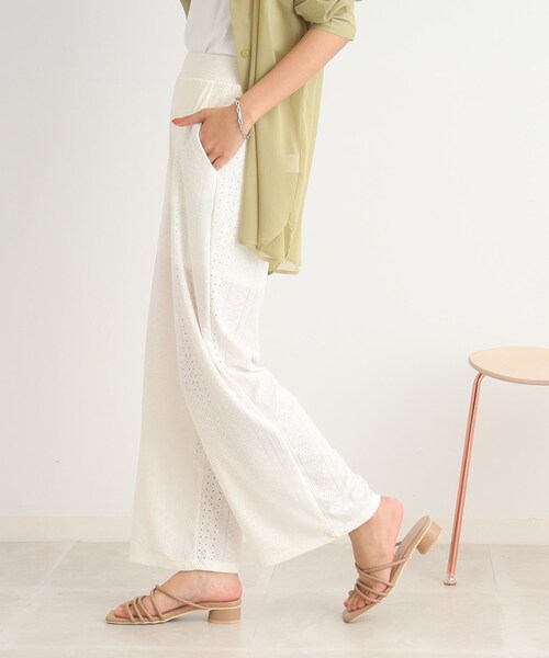 【デザイン】 レースが目を引くワイドイージーパンツです! 後ろがウエストゴム仕様になっているので楽チンでストレスなく着用していただけます。 総レース柄でコーデのアクセントにピッタリな1枚に仕上がっています。 ※ポケット数:前×2 【素材】 伸縮性のあるレース素材を使用しています。 ショート丈裏地あり。 ※こちらの商品はやや透け感があるため、インナーの着用をおすすめします。 #CutieBlonde#Cutie#cutieblonde#cutie#キューティブロンド#キューティ#20代#30代 モデル情報:身長166cm 着用サイズ:00(FREE) 店舗へのお問い合わせ商品番号:256-66010 ●製品寸法: 00(FREE):W62~70cm H86cm 股下67cm 前股上30cm 渡り幅31cm 裾幅27cm 備考: