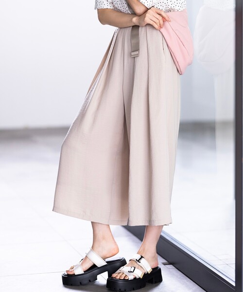 柔らかでふわりと広がるガウチョパンツ!【デザイン】タックが入ったボリュームのあるワイドパンツです。絶妙なワイドシルエットが美脚見えの秘密。足首が見えることで抜け感が出て、アンクルストラップのサンダルとの相性も◎ウエスト後ろはゴム仕様なので身体に程よくフィットする着心地です。タック入りで腰回りもスッキリ。※ポケット数:横×2【スタイリング】ウエスト後ろがゴム仕様で楽ちん♪なのにタック入りだからきちんとして見せてくれる嬉しいパンツは、きれい目ブラウスと合わせて着たい気分。ちょっとしたお出かけシーンにも良いですよ!もちろん、カジュアルなTシャツ合わせも上品にキマるので、大人カジュアルにもおすすめです。【素材】裏地は、ふれた瞬間ひんやりする接触冷感機能付。さらっとした肌ざわりが気持ちいい麻調スラブ素材。※裏地あり※こちらの商品はやや透け感があります。※スタジオ画像とロケ画像はそれぞれ、照明や太陽光の関係により実際よりも色味が違って見える場合があります。(実際のお色味に近いのはスタジオで撮影した画像です)またパソコン・スマートフォンなどの環境により、若干製品と画像のカラーが異なる場合もございます。予めご了承ください。こちらの商品は主に夏に着用いただける商品です。モデル情報:身長163cm B81 W56 H82 着用サイズ:02(M)店舗へのお問い合わせ商品番号:741-66024●製品寸法:02(M):W67~94cm H130cm 股下54cm 前股上32cm 渡り幅42cm 裾幅37cm03(L):W70~97cm H133cm 股下55cm 前股上33cm 渡り幅43cm 裾幅38cm04(LL):W73~100cm H136cm 股下56cm 前股上33cm 渡り幅44cm 裾幅39cm備考: