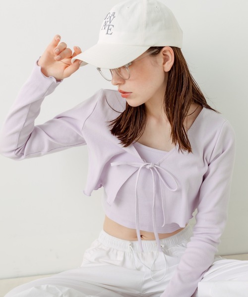 トレンドのボレロとキャミのアンサンブルセット ■デザイン ・トレンドのクロップド丈で仕上げた、ボレロとキャミソールのセット。 ・キャミソールはカップ付きなので、インナーを気にせず着ていただけます。 ・テレコ素材でスッキリとしたシルエット。コンパクトなサイズ感でY2Kスタイルに◎ ・袖口と裾はメロウで可愛らしく仕上げました。 ・ボレロとインナーは、別々でも着まわし可能です。 ■カラー ・オフホワイト/ラベンダー/ブラックの3色展開 ■スタイリング ・ボトムスはカーゴパンツやデニムパンツなどカジュアルなものが今年らしいです。 ・ガーリーに着たい方はミニスカートとも相性抜群です。 ・足元は厚底スニーカーやグルカサンダルがおすすめ。 ■ POINT 春服、春コーデ、夏服、夏コーデ、カーディガン、ボレロ、キャミソール、インナー、カップ付インナー、ショート丈、短丈、クロップド丈、韓国ファッション、韓国コーデ、ガーリー、レトロ、スポーティ -------------------------------------------- 裏地:なし 光沢感:なし 透け感:なし 伸縮性:ややあり カップ取り外し: 不可 手洗い: 可能 タンブラー乾燥: 不可 アイロン:ボレロは不可/インナーは150℃まで○ -------------------------------------------- ※着用、お取り扱いの際は、商品についている品質表示とアテンションタグを必ずご確認下さい。 ※ご覧のモニター環境や撮影環境により実際の商品と多少色味が異なって見える場合がございます。 ご理解の程よろしくお願いいたします。 ■お気に入り登録のおすすめ 【気になるアイテムを登録】 ハートをクリックしてお気に入りに登録すると 完売カラーの再入荷やラスト1点の通知、セールの通知を受けとることができます。 【ブランドを登録】 新商品や再入荷、セール通知など、いち早くブランドの情報を受けとることができます。