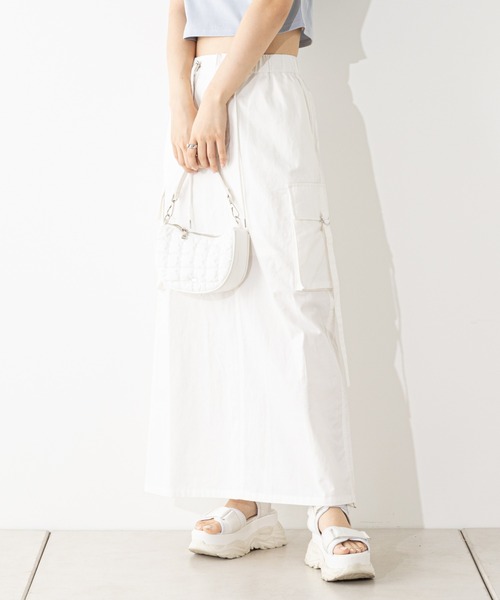 今季注目のワークデザインを取り入れたロングスカート ▶︎商品ポイント ・綺麗なシルエットでカジュアルになりすぎず女性らしく着こなしていただけます。 ・すっきりした腰回りと裾に向かって広がっていくメリハリのあるデザインがスタイルを綺麗に見せてくれます。 ・スリット? ▶︎スタイリングポイント ・トレンドのクロップド丈のアイテムも好相性。 シャツやメッシュトップスで合わせるとトレンドライクな印象に。 ・チビTなどコンパクトなトップスを合わせて女性らしいラインを出すと綺麗なバランスでまとまります。 ・夏はタンクやキャミに合わせてヘルシーな着こなしもカジュアルダウンできておすすめです。 ▶素材・洗濯表示 素材比率:本体 綿100% /アイボリーのみ裏地 ポリエステル100% 洗濯:洗濯機洗い可 ※摩擦や、汗や雨等で濡れた時は他の衣類や下着等に色移りする可能性がございますので、十分ご注意ください。 …………………… 透け感:アイボリーややあり 厚さ:★★☆☆☆ 伸縮性:なし 裏地:あり ポケット:あり ファスナー:あり …………………… ※詳しいお手入れ方法は商品タグをご参照ください。 ※お洗濯や着用時の引っ掛けには十分にご注意ください。 -------------------------------------------- ▼お気に入り登録のおすすめ▼ ハートをクリックしてお気に入りに登録すると 完売カラーの再入荷や残り1点の通知、セールの通知を受けとることができます。 ▼ブランドのお気に入り登録▼ 新商品や再入荷、セール通知やショップのおすすめトピックスなど、いち早くブランドの情報を受け取ることができます。 -------------------------------------------- ※商品について ・サイト上のカラー名と、お届け商品に記載されているカラー名が異なる場合がございます。 ・商品の色味は、撮影場所や光のあたり具合などにより色味が違って見える場合がございます 。 また、お客様のお使いのPCのモニター環境などにより色味が違って見える場合がございます。 予めご了承の上ご注文下さい。 ・セールは予告なく終了させていただく場合もございます。 ※商品ページでは、遅延などの影響も考え、お届け予定時期を少し先に設定させていただいております。 予約商品は商品ページに記載しているお届け予定時期よりも早いお届け予定になる場合がございますので、予めご了承ください。 ※返品・キャンセルについて ・着用、洗濯後の返品、交換は致しかねます。 ・商品到着後、着用前に商品を確認して頂きますようお願い致します。 ※画像の商品はサンプルです。実際の商品と仕様、加工、サイズ、素材が若干異なる場合がございます。 ※ご注文いただいた予約商品のお届け時期の確認は、注文履歴ページより行えます。