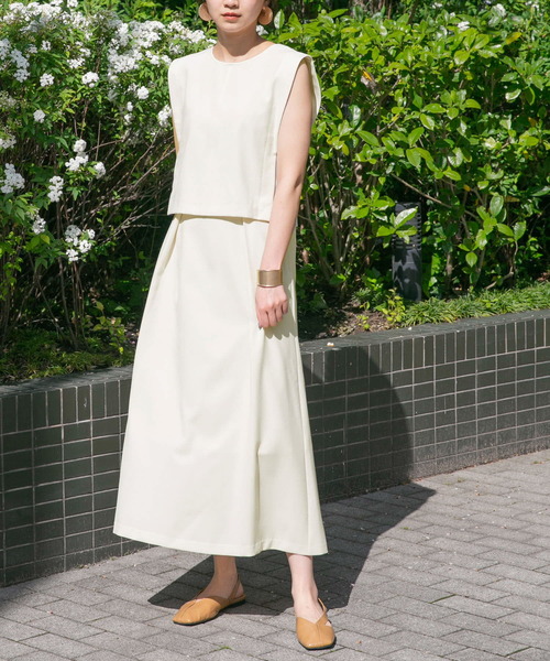 【マルチな着こなしが楽しめるセットアップワンピース】前後2WAYで着まわせるトップス、それぞれ単品使いなど、多様な着回しが叶うロングワンピースが登場。シックなカラーリングと大人に着こなせる上品なシルエットで、普段使いはもちろん、シーン使いにも活躍が期待できる1着です。シンプルながらもすっきり穿けるスカートのフロントタックも嬉しいポイント。POINT・マルチな活躍が期待できるセットアップ仕様・シーン使いにも最適な上品さ・飽きの来ないシックなカラーリングCOORDINATEセットアップで着用するだけでグッと大人な印象に◎アクセやシューズ、気分に応じて様々な着こなしを楽しんでいただくのがおすすめです。【2023 Spring/Summer】※商品画像は、光の当たり具合やパソコンなどの閲覧環境により、実際の色味と異なって見える場合がございます。予めご了承ください。※商品の色味の目安は、商品単体の画像をご参照ください。▼お気に入り登録のおすすめ▼お気に入り登録商品は、マイページにて現在の価格情報や在庫状況の確認が可能です。 お買い物リストの管理に是非ご利用下さい。素材感透け感 : ややあり(L.BEIGEのみ)伸縮性 : なし裏地 : あり(スカートのみ)光沢 : なしポケット : なし