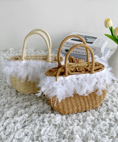 ふわふわフェザーがアクセント♡ シーズンムードたっぷりな巾着かごバッグ スタイリングに取り入れるだけで一気にシーズンムードを高めてくれるストローバッグ♡ ふわふわフェザーがお洒落感で女性らしい雰囲気を演出してくれます。 マチ付きで500mlも入るサイズ感で内側には便利なポケット、巾着タイプで開閉ができるのも嬉しいポイント◎ ナチュラルな素材感のアイボリーとブラウンの2色展開で、幅広いコーデにマッチしてくれます。 デザイン性も使いやすさも兼ね備えた、スタイリングに加えたいアイテムです♪ 【Loueme...♡】 ”Loulou”(可愛い子) + "bohéme"(自由奔放) 造語から”Louéme(ルエム)”が誕生しました。 自由気ままに、おしゃれを楽しみ 自分のため、大切な誰かのために いつだってかわいくいたい女の子のためのブランドです。 ※ご覧のモニター・撮影環境により実際の商品と多少色味が異なって見える場合がございます。予めご了承をお願いいたします。 ~お買い物をよりお楽しみいただく為に~ ▼”商品”のお気に入り登録 ハートをクリック! 完売カラーの再入荷や、ラスト1点の通知、セールの際の通知を受ける事ができます。 ▼”ブランド”のお気に入り登録 新商品や再入荷など、いち早くブランドのお得な情報を受け取ることができます♡ ※他のキャンペーンにより、期間中に価格が変動する場合があります。※セールは予告なく終了させていただく場合もあります。