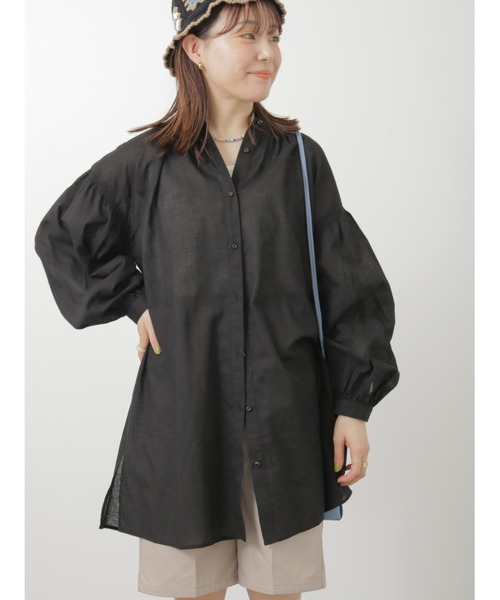 ふんわりとしたボリュームスリーブがやわらかな印象を与えるチュニック。ネックラインのくしゅっとしたデザインで、立体感のあるシルエットを演出します。サイドにあしらわれたスリットがスタイリングのさりげないアクセントに◎パンツと合わせたメリハリのあるコーディネートがおすすめです。※商品画像は、撮影環境やお客様のご利用のPC・スマートフォンのモニター環境などにより実物と色味に差異がある場合がございます。
