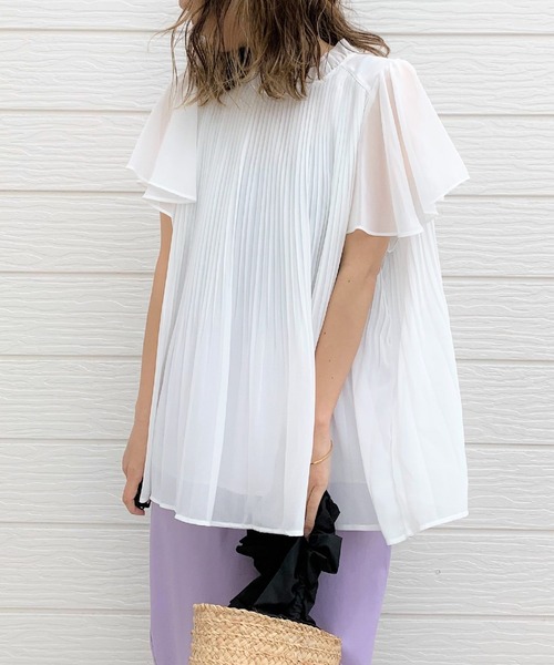 シフォン生地のエアリーな風合いが春夏スタイルを軽やかに演出するブラウスです。 前後2WAYで着られる便利なアイテム。 フリリーなハイネックにフレアスリーブ、身ごろには消しプリーツをデザインし、適度に広がるフレアシルエットが女性らしい雰囲気を与えてくれます。 動くたびに揺れる軽やかさも魅力的。 上品な雰囲気のブラウスは様々な場面で活躍すること間違いなしです。 ※ブラックはWEB限定色です 《インフォメーション》 ◆商品のお気に入り登録 完売していても再入荷時に再入荷通知を受け取ることができますので、是非ご登録ください。 ◆ブランドのお気に入り登録 新商品や再入荷などの情報を受け取ることができますので、是非ご登録ください。