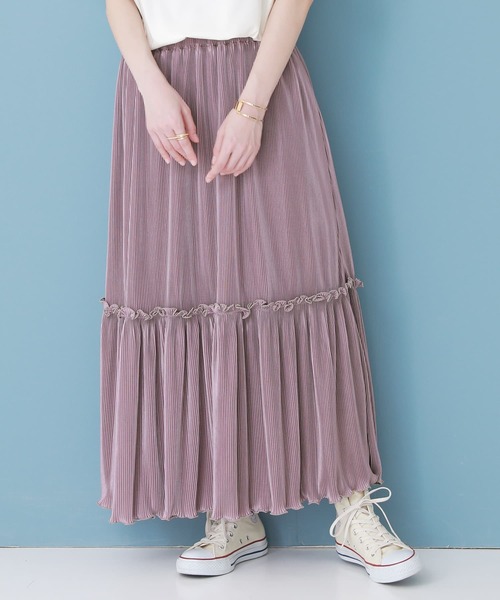 『大人が穿いて、こなれ見え。』 細かいプリーツを施した、動くたび軽やかに揺れる裾が目を惹く一枚。 配色メローデザインが印象的で、動きのあるフリルが程よい甘さをプラスするティアードスカートです。 アコーディオンプリーツを施した、上品な光沢感が映える滑らかな肌触りのカットソー生地を使用。 伸縮性のあるストレスフリーな穿き心地。 裏地付きだから、軽やかな揺れ感を楽しみながらも安心して着用できる♪ロングシーズンで着回していただけます。 たっぷりの分量感で裾に動きの出る、程よい長さの綺麗なセミフレア。 ウエストゴムでも膨らまずに腰回りはすっきり見える、コーデに合わせやすいデザインです。 今、好きな物、興味あることを自由な発想で表現できる≪ n'OrLABEL ≫。 「実用性と機能性、そして遊び感覚」、多面性を楽しめるピュアでモードなデザインライン。 ≪n'OrLABEL≫メローデザインティアードプリーツスカートです。