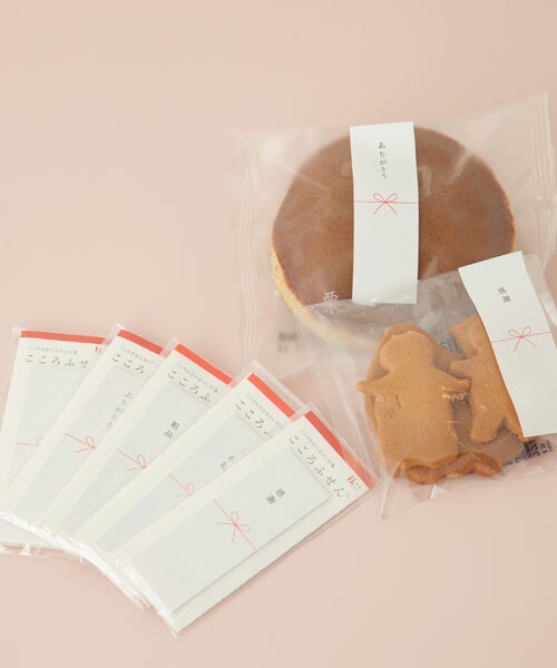 ちょっとしたお礼や差し入れの際に、さりげなく一緒に張り付けておけば、気持ちが倍伝わるはずです。下段に名前を書いて使用します。気軽に貼れるタテ型です。※こちらの商品にお菓子は付属しておりません。予めご了承くださいませ。